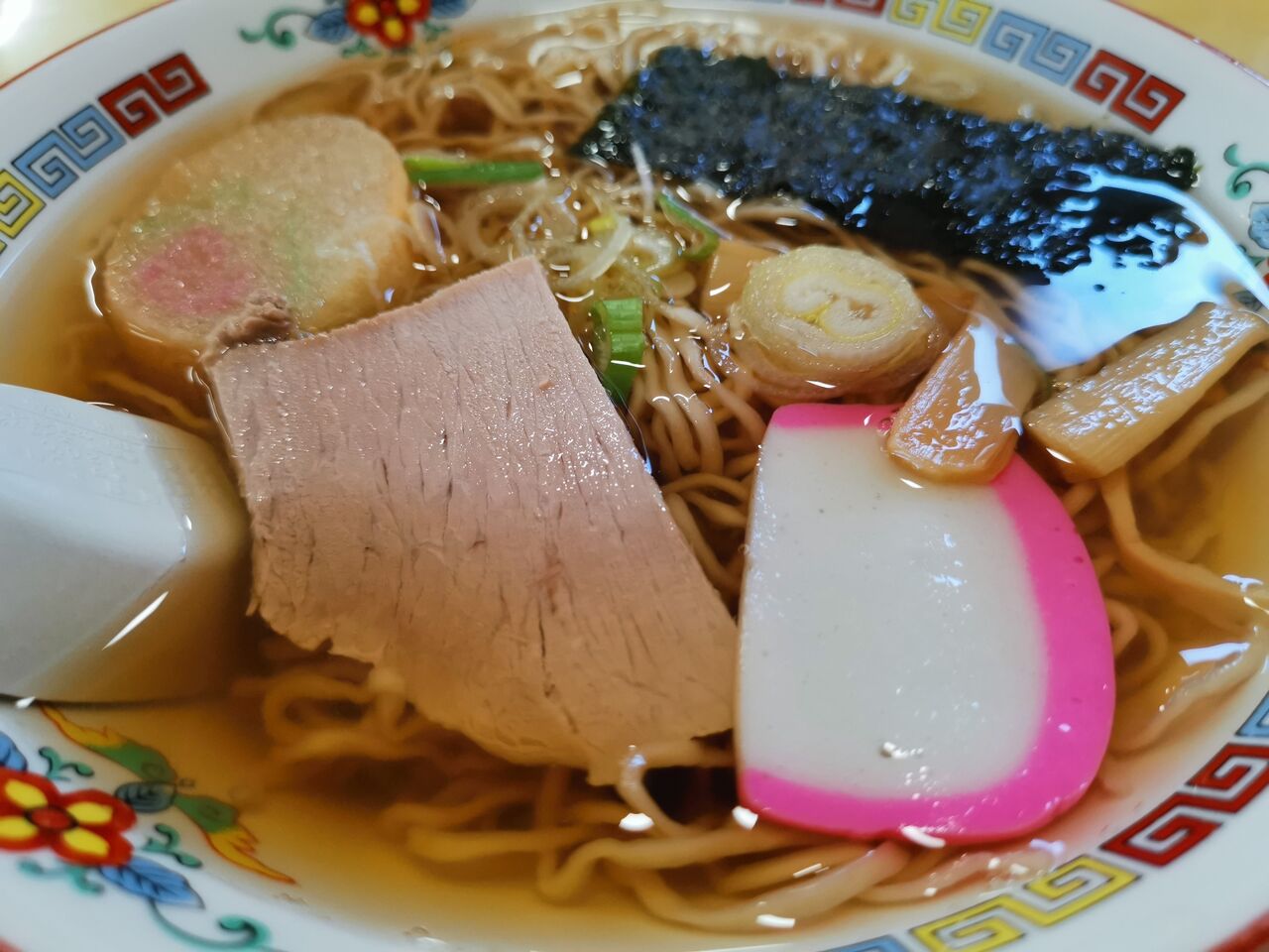 魚介だしの澄んだ醤油スープは、具の麩とあわせると、青森の中華そばを